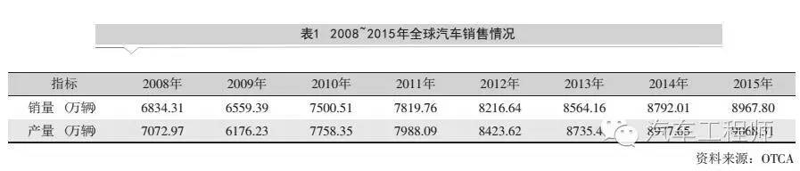2015年,在全球经济不景气、经济增长放缓的背景下,世界汽车产销总量依然增加。根据世界汽车组织 (OICA) 的统计,全年全球累计生产各类汽车 9068.31 万辆,同比增长 1 个百分点。